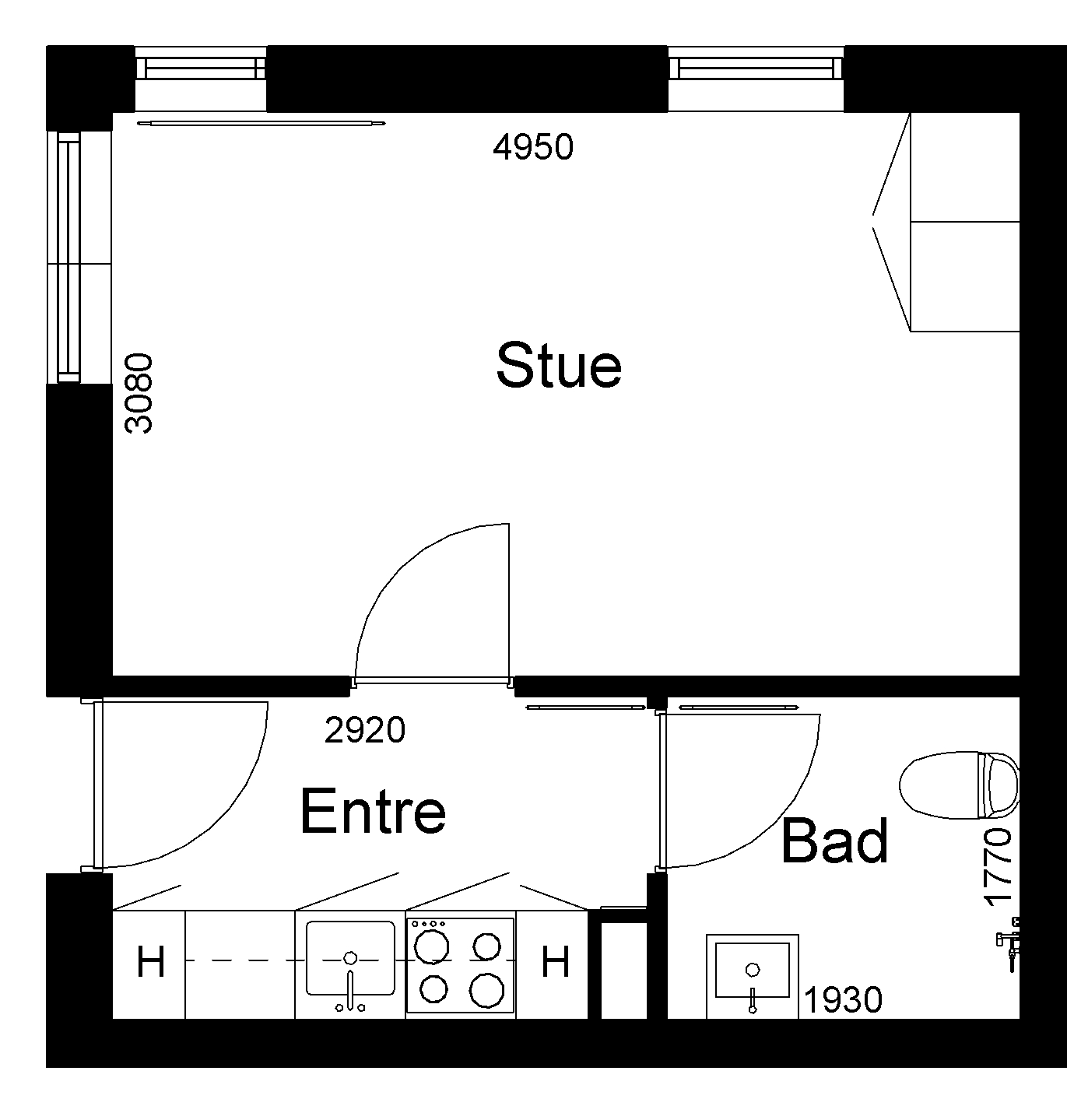 Etagebyggeri | Ungdomsbolig | 1 vær. | 32 m² | Indskud/dp.: 4.500 kr.