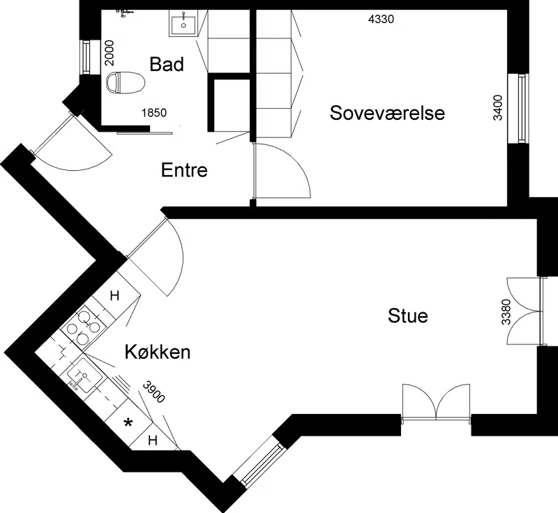 2 værelses
